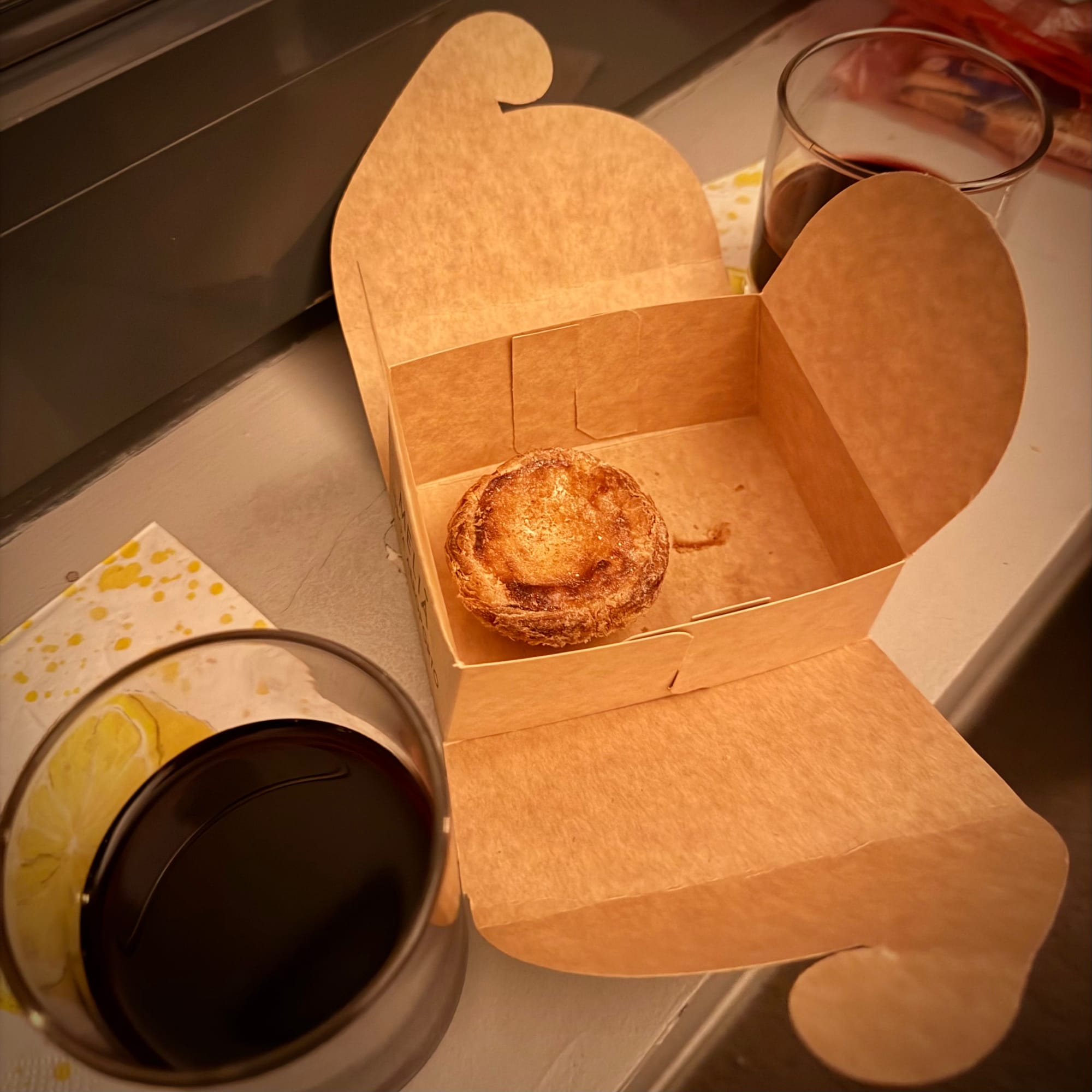 Then there are the many empanada-style variations we kept coming back to: at Quiosque de Santa Catarina (photo 3) and at Quiosque Lisboa with a codfish (bacalhau) filling in the Parque Infantil da Praça das Flores (photo 7). Our first Pastéis de Nata came early, at 8 in the morning at the airport (photo 1), and the last ones were courtesy of the Meliá Hotel in the evening before our 10 am Delta flight home (photo 9).