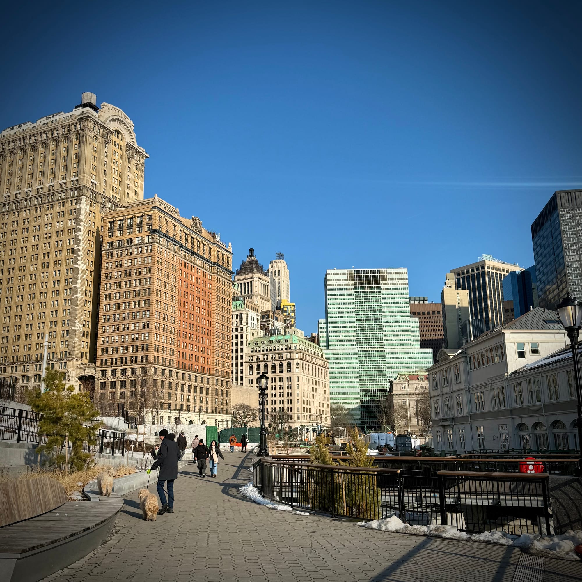 Downtown Manhattan felt almost cinematic on Monday. After too long a stretch of freezing cold, with sun only sporadically, it finally showed up again — brushing the old, tall buildings along Broadway in that particular winter light that makes everything look sharper and softer at the same time.