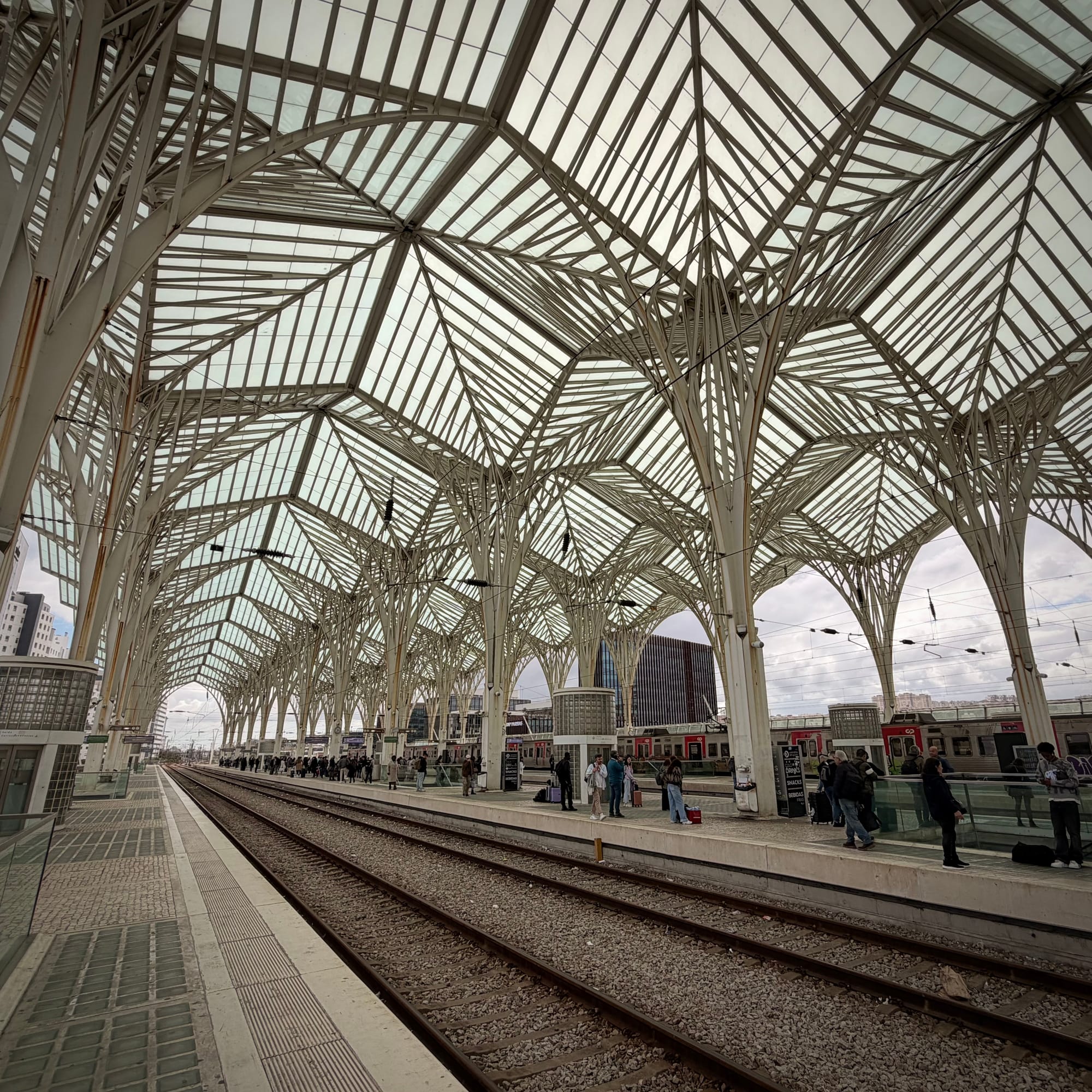 As longtime fans of Santiago Calatrava, we wanted to see his work here firsthand. We’ve seen his Puente de la Mujer in Buenos Aires, the Samuel Beckett Bridge in Dublin, and, of course, the World Trade Center Transportation Hub in New York. The Gare do Oriente is nothing short of stunning, and we sat for half an hour watching people walk by and trains come and go. Everything felt slower, softer than New York — almost meditative.